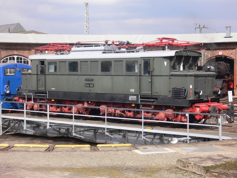 electric locomotive E44 143| Builder: | Henschel / Siemens-Schuckert | | Type: | E 44 | | Constructed: | 1942 | | Works number: | 25384 | | Power output: | 1.860 KW (2.529 PS) | | Maximum speed: | 90 km/h | | State: | Exhibit |
