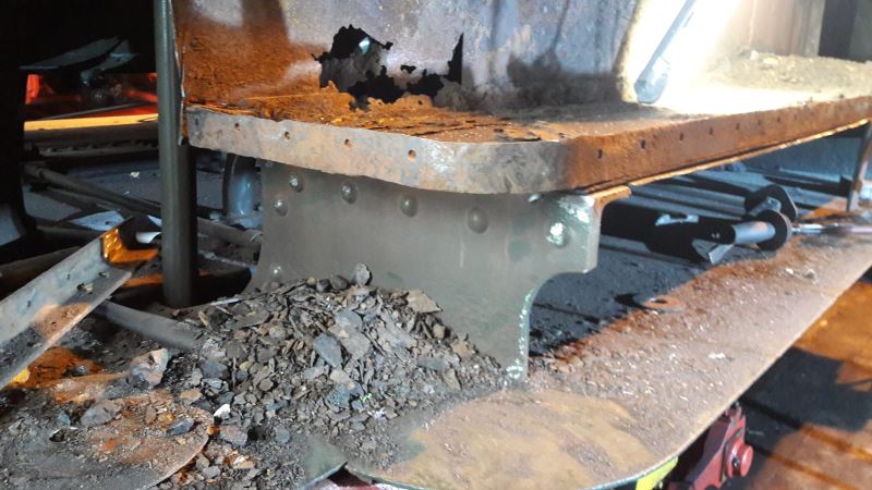 During dismantling, it turned out that not only the outside but also the inside of the bunker was affected by pitting corrosion, so a new piece of sheet metal was welded in place here as well.