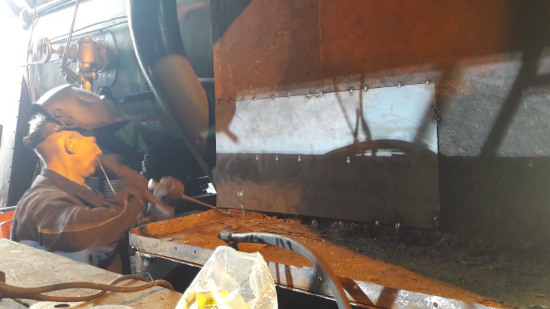 Only Emma knows how much coal was poured into her coal bunker and shovelled out from there by the countless firemen she has met in her life. So the ravages of time slowly gnawed away at her coal bunker, and rust ate its way through the metal from the inside. Now we are using the winter break for some cosmetic surgery and to give the little locomotive some new metal plates so that she looks pretty again and the coal stays where it belongs.