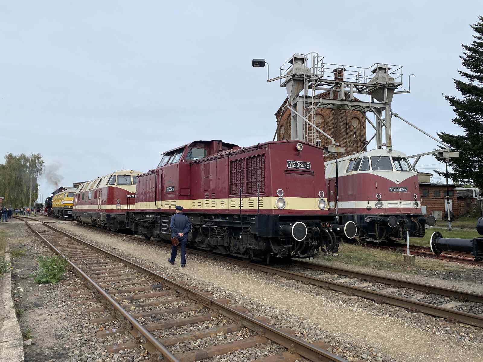 Last weekend, we heralded the coming end of the season for our museum with an event at which everything that can run under its own power in our museum was on the move. This included our diesel locomotives 320 001, 118 748, the steam locomotive Emma, our diesel shunters and - brand new in operation - our locomotive engine from Breuer. However, the star of the event was certainly the Press Group's steam locomotive 86 1744, which was available for cab rides in top condition. In addition, the company Lok OST kindly provided us with a V100 diesel locomotive, which could be admired as an exhibit and during the parade rides at around 14:00 on Saturday and Sunday. Thanks again to both companies for enriching our festival with their participation. Fortunately, the weather was mostly fine and we were able to welcome around 1,400 visitors to our event. The fact that vintage car enthusiasts from the Altmark region visited us with their more than 20 historic vehicles certainly contributed to this, bringing additional life to the museum grounds. Thank you very much for your visit! Of course, the fire brigade once again gave their all with their famous pea soup, which was a real treat for the palate. Here is a small selection of pictures from our event.