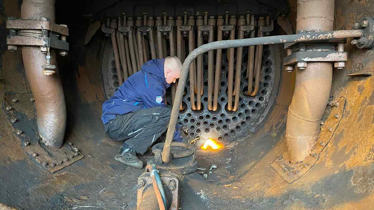 Other boiler attachments are also being refurbished, here the colleague is cleaning a few wash hatches.