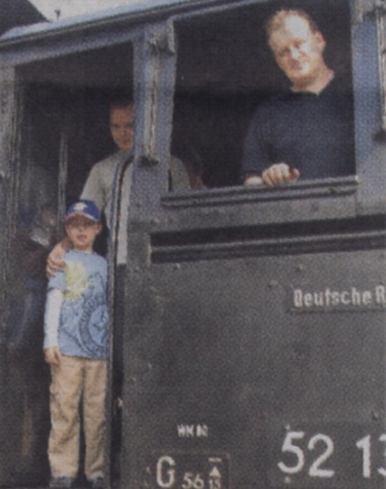 Jan Niklas nahm auf einer zur Draisine umgebauten Schwalbe Platz, Mama Doreen machte Fotos.
