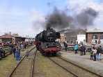 Undoubtedly, the stars of the collection are the four steam locos of class 50.35, for such a long time typical of Wittenberge depot. Apart from these, visitors can also admire the cute little industrial loco Emma and a class 44 heavy freight loco, as well as seven main-line diesels and seven smaller diesel locos The railway enthusiasts also look after a hospital carriage of the Deutsche Reichsbahn, the car-carrier which formed part of the first GDR ministerial train and a number of hand-trolleys. The signal box "Wm", built in 1909, is also part of the railway museum and anyone who wishes to try their hand on the levers can find out just how much physical effort lay behind resetting points and signals in the old days.