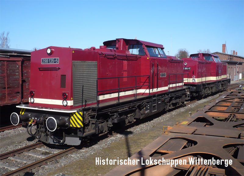 ![]() In mid-March 2018, 298 135-5 and 202 364-6 (ex-112 364-5) from Lok OST took several days' rest in Bw Wittenberge. |