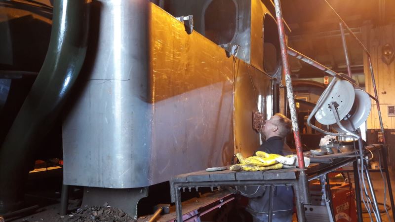 Only Emma knows how much coal was poured into her coal bunker and shovelled out from there by the countless firemen she has met in her life. So the ravages of time slowly gnawed away at her coal bunker, and rust ate its way through the metal from the inside. Now we are using the winter break for some cosmetic surgery and to give the little locomotive some new metal plates so that she looks pretty again and the coal stays where it belongs.