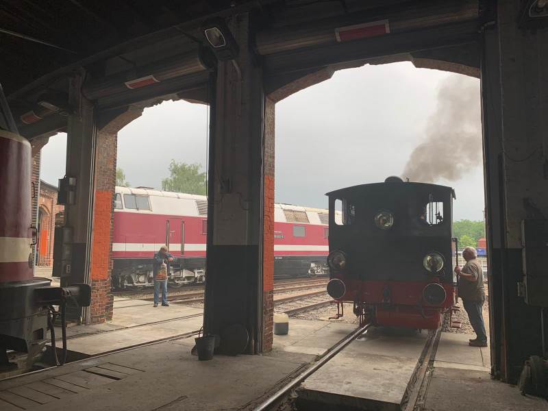 Nun ist schon fast die halbe Saison verstrichen, ohne dass sich eine Dampflok auf unserem Gelände aus eigener Kraft bewegt hat. Die Aktiven haben beschlossen, dass sich das ändern muss. Und weil Lok Pritzwalk ohnehin einen Dampftest nach erfolgtem Kesselrohrwechsel hinter sich bringen musste, wurden beide Anlässe vereinigt und die kleine Lok angeheizt. Die Reparatur ist erfolgreich verlaufen und die Lok steht wieder betriebsbereit zur Verfügung.