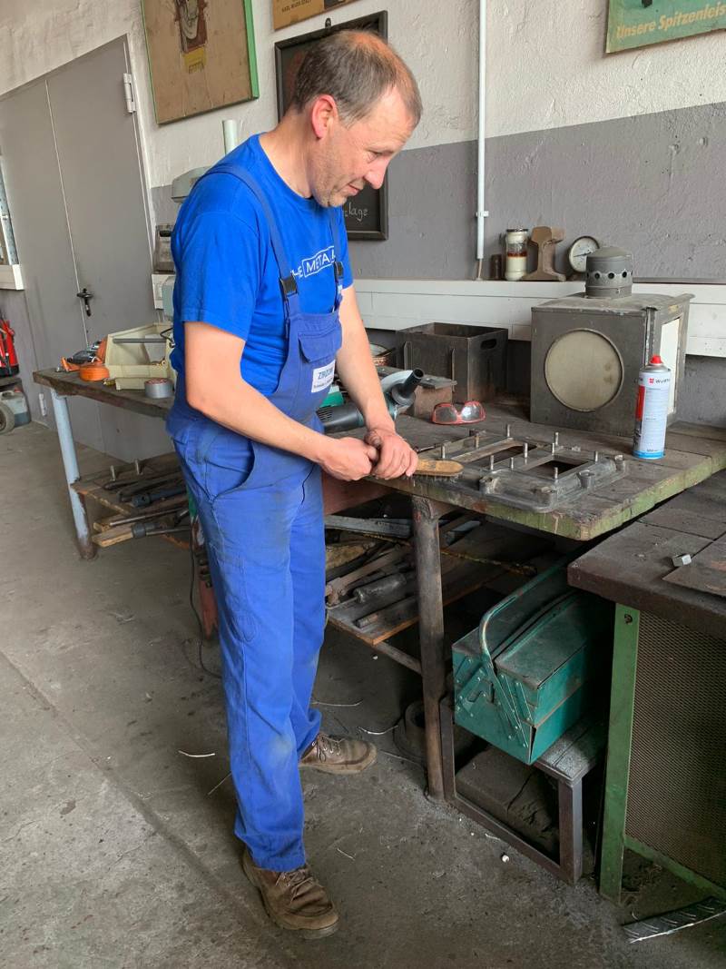 Das nächste Bild zeigt eher filigrane Schlosserarbeit. Der Antrieb unseres Breuer-Traktors ist immer noch in Aufarbeitung. Das Getriebe läuft dank neuer Kugellager und neuem Getriebeöl schon wieder wie neu. Hier wird noch die obere Gehäuseplatte des Getriebes gereinigt und später lackiert. Dann ist das Getriebe einsatzbereit. Als nächstes werden wir uns dem VW-Motor widmen, der dem Gefährt als Kraftquelle dient.