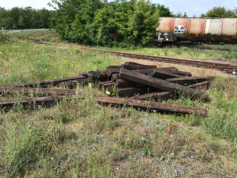 Wir verzeichnen auch eine freundliche Spende in Form von altbrauchbaren Holzschwellen, die wir gerne in unser Lager aufnehmen. Der an das Spiel „Mikado“ erinnernde Haufen sieht zwar etwas unspektakulär aus. Man darf jedoch nicht vergessen, dass solche Schwellen aus Hartholz mindestens € 200,- je Stück kosten, wenn man sie neu kauft. Nächste Woche werden sie sicher geordnet aufgestapelt.