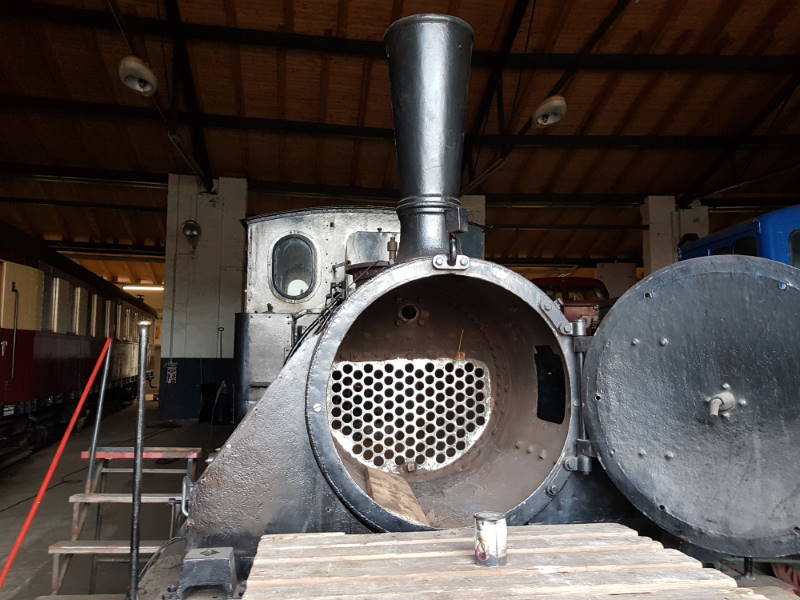 You can also squeeze into the smoke box of the steam locomotive Karlsruhe and prepare the pipe wall for the installation of new pipes, so that the little locomotive can steam again next year ...