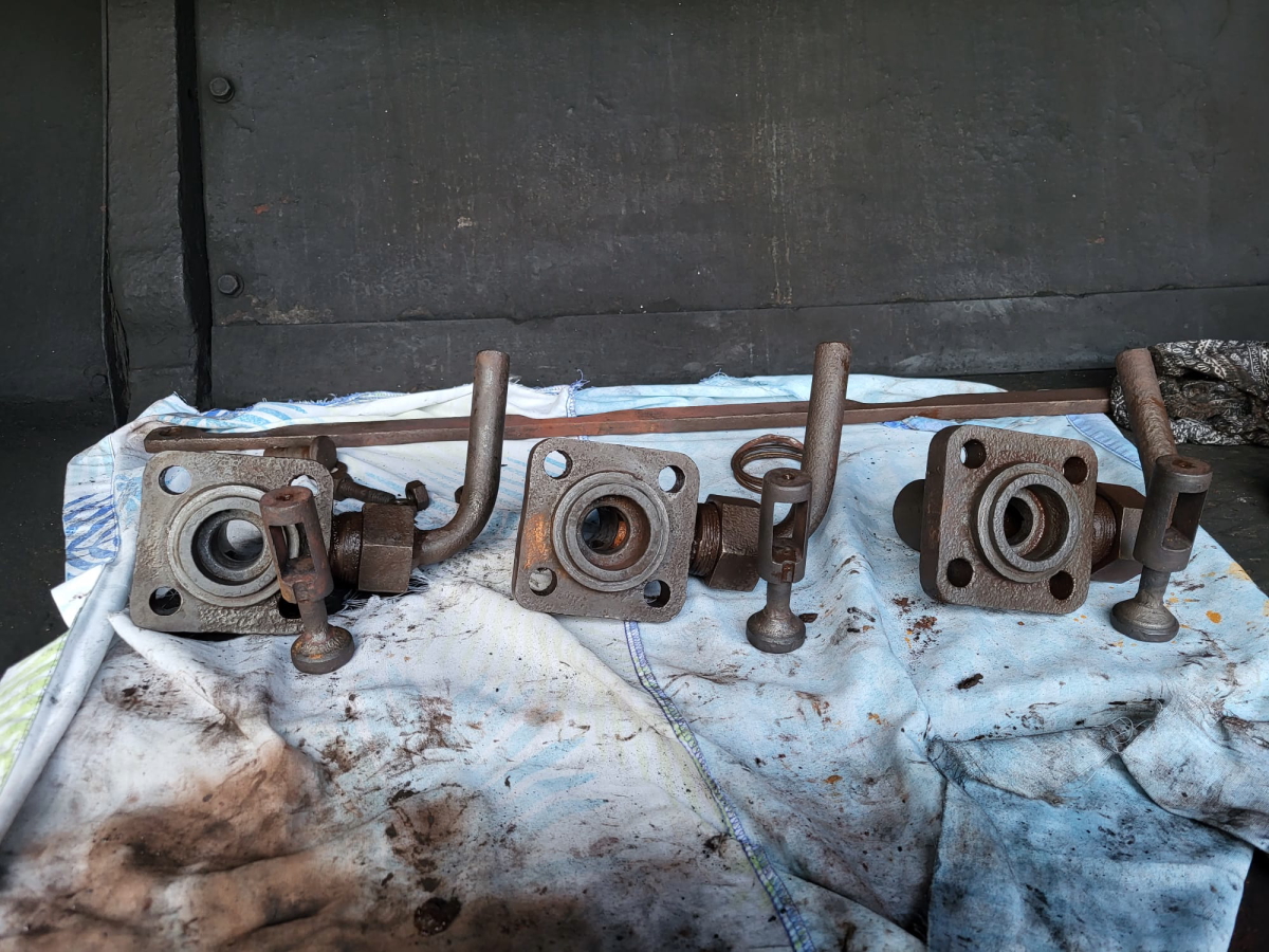 Beim letzten Aufdampfen der Dampflok 01 509 haben wir zudem festgestellt, dass das Umstellventil für die Dampfheizung an unser Dampflok 50 3570 nicht mehr ordnungsgemäß arbeitete. Es dient dazu, den Dampf aus dem Kessel der Lokomotive entweder an das eine oder andere Ende der Lok zu leiten, um dort an die Heizleitung von Personenwagen angeschlossen zu werden. Unser Ventil ließ aber Dampf in beide Richtungen strömen und wir mussten nun die Ursache erforschen. Dazu wurde das Ventil ausgebaut und zerlegt. Zum Glück hatten nur Kalkablagerungen an den Dichtflächen zu der Störung geführt.
