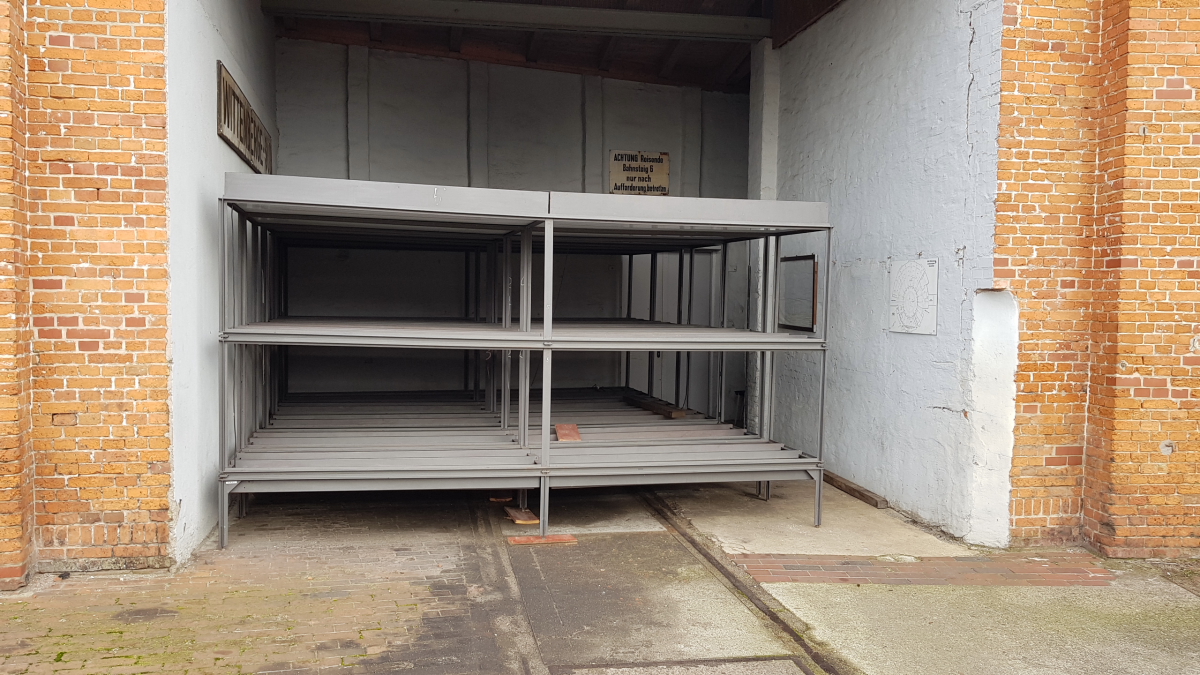 Auch um die Einrichtung der Ausstellungsräume haben wir uns bereits gekümmert. Hier konnten große und beleuchtbare Vitrinen aus dem Deutschen Technikmuseum in Berlin übernommen werden. Sie sind zwar schon vor Ort in Wittenberge, warten aber noch auf den schweißtreibenden Transport in die neuen Ausstellungsräume. Der alte Ausstellungsraum im Erdgeschoss im Südgiebel wird übrigens Archiv werden.