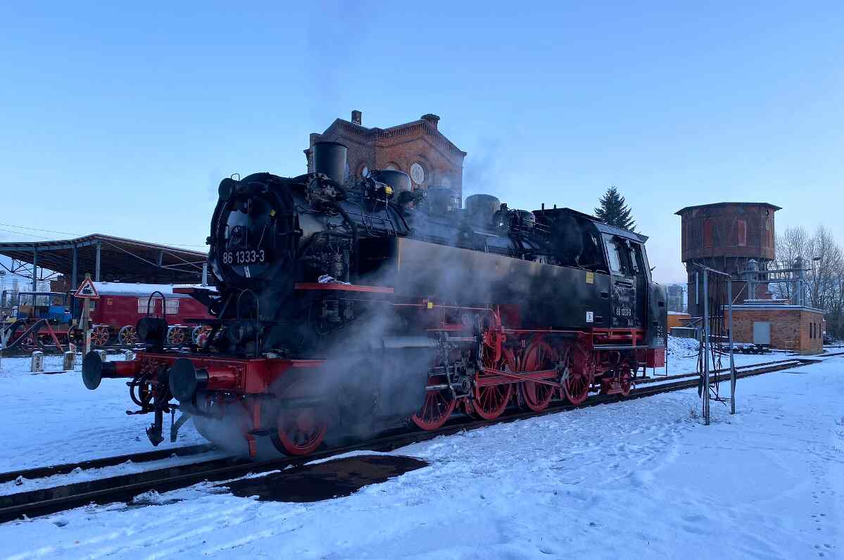 Now it's time for a little Christmas peace and quiet in the museum. Our guest locomotive 86 1333 has arrived safely back in Wittenberge from its last run on the Heidekrautbahn near Berlin and will now spend the next few weeks and months under cover with us.