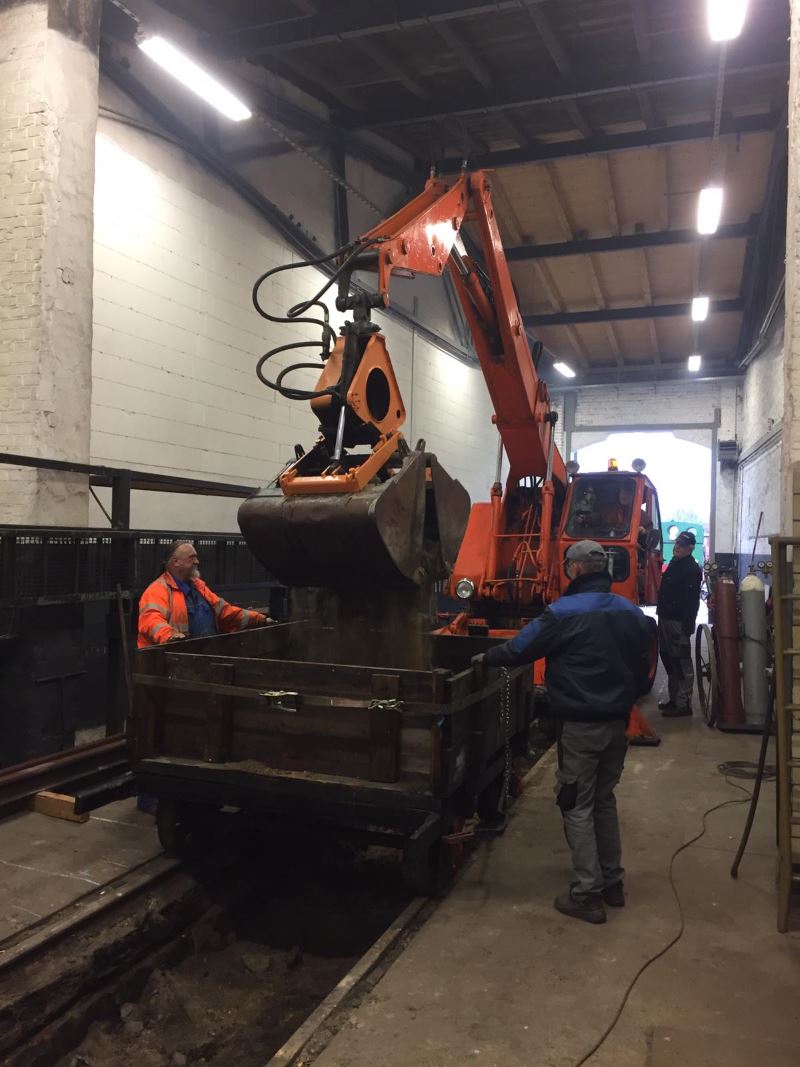Daher wurde beschlossen, die Grube tiefer auszugraben, die Schienen komplett zu entfernen und alle Schwellen auszuwechseln. Da es keine Kleineisen mehr gibt, um die alten Schienen auf den neuen Schwellen zu befestigen, werden gleich auch neue Schienen eingebaut, für die es noch Befestigungsmaterial gibt.