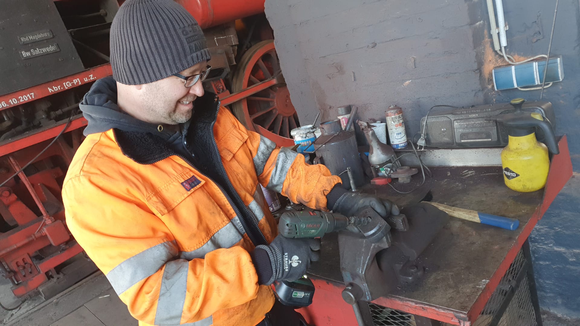 Our 2024 season ended at the end of October with the last day the museum was open, when many visitors came to the engine shed to get a last whiff of the steam locomotive smell. After that, we began the part of the year in which we traditionally dedicate ourselves to the work that requires more effort. In particular, this includes work on our steam locomotive 50 3570, which we would like to present in working order again next year. To do this, we have to complete a number of tasks that are quite time-consuming. This includes in particular the boiler repair, which is now being prepared. Last Saturday, we joined forces to wash out the boiler. To do this, all the wash hatches were removed. These are mushroom-shaped closures that seal small oval openings in the boiler wall, through which impurities and limescale residues can be flushed out of the boiler with a strong jet of water. As the nuts holding the plugs are sometimes extremely tight, they have to be heated red-hot with a flame so that they expand slightly and can be loosened.